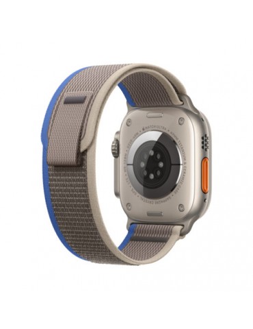 Sinine/hall Trail Loop nailonrihm sobib Apple Watch seeriatele 4–10 / SE / Ultra jaoks (44 / 45 / 46 / 49 mm). Kerge ja hingav materjal tagab mugavuse kogu päeva vältel, elastne disain istub kindlalt randmel. Takjakinnitus võimaldab lihtsat reguleerimist. Sobib suurepäraselt sportimiseks, jalutuskäikudeks ja igapäevaseks kasutamiseks.