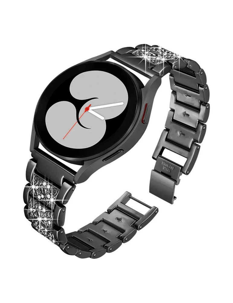Metallist rihm sädelevate kivikestega Samsung Galaxy Watch 7 / 6 / 5 / 4 / 6 Classic / 4 Classic jaoks – värv must